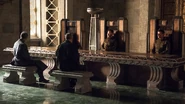 Stannis și Davos au o nouă strategie și încearcă să obțină fonduri. Dany se întâlnește cu niște suplicanți. Tyrion își înfruntă tatăl în sala tronului.[1]